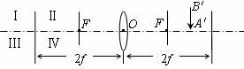 16.如下图所示,F为凸透镜的两个焦点,A'B'为物体AB的像,则物体AB在 ( )