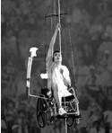 22.如图所示,是2008北京残奥会开幕式最后一棒火炬手侯斌,靠自己双手的力量,攀爬到火炬台底部并最终点燃圣火的照片,该点火仪式充分体现了残疾人自强自立、拼搏向上的勇气和精神.已知他和轮椅总质量为80kg,攀爬高度39m,历时约3min20s.