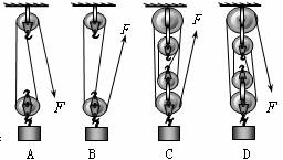 (2)小明同学看到火炬手攀爬很费劲,想到物理课上学过利用滑轮组可以省力.小明同学如果站在地面上,用如下图所示的哪个滑轮组拉起火炬手侯斌最合适,理由是什么?如果该滑轮组机械效率为80%,求小明同学的拉力至少要多大?(g取10N/kg)