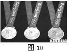 21.图10是运动会的奖牌,冠军奖牌是银质镀金,亚军奖牌是银质,第三名奖牌为铜质,