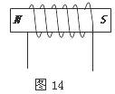 25.如图14所示,根据电磁铁两端的N、S极,在图中标出电流方向.