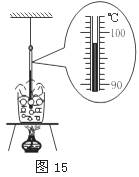 26.京京在实验室中烧水。水开始沸腾时,温度计的示数如图15所示,由此可知此地水的沸点是 ℃。