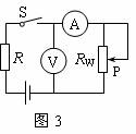 11.图3所示电路中电源两端的电压不变。滑动变阻器RW的滑片P在某两点间移动时,电流表的示数在1A至2A之间变化,电压表的示数在6V至9V之间变化。定值电阻R的阻值及电源两端的电压分别为