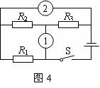 12.图4所示电路中电源两端电压不变。当①和②均为电压表时,开关S闭合后,电压表V1、V2的示数之比为7∶12,电阻R1消耗的电功率为P1。当①和②均为电流表时,开关S闭合后,电流表A1、A2的示数之比为16∶21,此时电阻R2消耗的电功率为P2¢。则P1∶P2¢等于