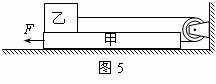 16.如图5所示装置中,物体甲重20N,乙重10N。甲、乙之间用一根轻绳通过定滑轮相连,沿着水平方向的拉力F的大小为5N时,物体甲恰能在光滑的水平桌面上向左做匀速直线运动。不计滑轮处摩擦,下列说法中正确的是