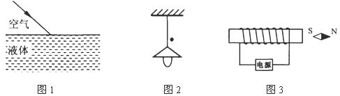 20.根据图3中小磁针静止时的指向,在图中标出通电螺线管的N、S极和电源的正负极。![]()