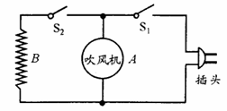 17.图8所示是一把既能吹冷风,又能吹热风的电吹风的简化电路,图中A是吹风机,B是电热丝。将插头插入插座,若只闭合开关S1,电吹风 吹出的是____风;若将开关S1、S2都闭合,电吹风吹出的是____风。(填“热”或“冷”)