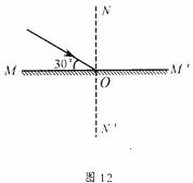 23.(4分)(1)如图12所示,一细光束射到平面镜MM'的O点处,请根据光的反射规律画出它的反射光线,标明反射角大小。