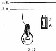 (2)图13所示为家庭电路的一个局部,请将螺口灯泡和按钮开关连入电路。