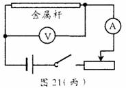 ②小亮和小敏设计了图21(丙)所示的电路,用来测量长度为50 cm的金属杆的电阻。他们备选的部分器材有: