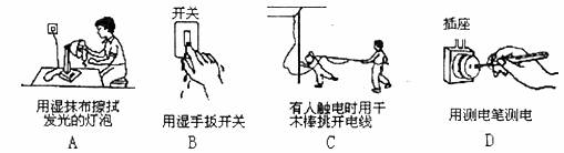 9.如下图所示的四幅图片所描述的情景中,符合安全用电原则的是