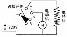 31.如下图所示是额定电压为220V的理发用电吹风机的典型电路。其中电动机通电后可以送风,电热丝通电后可以发热。