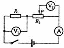 如下图所示,R1=10Ω,R2的最大值为30Ω,电源电压U=12V,求开关闭合后,在滑动片P滑动的过程中电压表V1、V2的示数范围、电流表A的示数范围。