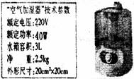 (2)根据“空气加湿器”技术参数,可知该加湿器工作10h消耗电能________kW·h;装满水时对桌面的压强为________Pa。(已知1L=10-3rn3)