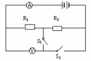 2.在下图所示的电路中,电源电压为10伏,R1=4欧,R2=6欧。求(1)当开关S1闭合,S2断开时,电压表和电流表的示数是多少?