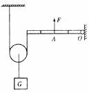 9.下图为杠杆与滑轮的组合应用,滑轮下所挂重物的重力G=500N,杠杆自重不计,绳是光滑的轻质细绳,滑轮重20N,要使杠杆平衡,在杠杆的中点处所加之力F=___________N.