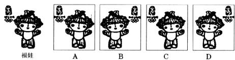 12.下图方框中的四个图像,其中一个是福娃在竖直放置的平而镜中的像,你认为应当是 ( )
