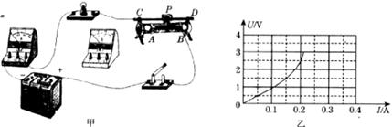 (1)用笔画线代替导线,将甲图中的电压表并联在灯泡两端。(1分)