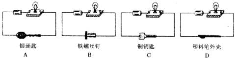 12.如图所示,用导线把灯泡、电池分别和四种物品相连,灯泡一定不发光的是( )