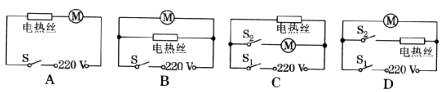 14.家用电吹风由电动机和电热丝等组成,为了保证电吹风的安全使用,要求;电动机不工作时,电热丝不能发热;电热丝不发热时,电动机仍能工作。下列电路中符合要求的是 ( )