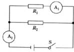 16.在如图所示的电路中,两只电流表的规格相同,电流表有两个量程(0-0.6 A和0-3 A)。闭合开关S,电阻R1与R2均有电流流过,并且两只电流表的指针偏转角度相同,则R1与R2的比值为 ( )