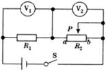 12.在如图所示电路中,两个电压表均为理想电表。闭合开关S,当滑动变阻器R2的滑动触头P移动时,对于两个电压表V1与V2的示数U1和U2,电压表V1与V2的示数的变化量△U1和△U2(均取绝对值),下列说法中正确的是 ( )
