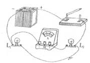 A.通过灯L1的电流 B、通过灯L2的电流.