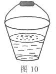 15.图10所示的平底水桶底面积为5×10-2m2,质量为1kg。桶内装有30cm深的水,放在水平地面上,水对桶底的压强比桶对地面的压强小800Pa。下列判断正确的是