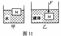 D.在乙图中,物体M受到的浮力大于M在甲图中受到的浮力