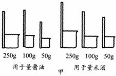 29.(4’)小明去某古镇旅游时发现,米酒是当地的一种特产。小店卖米酒和卖酱油都用竹筒状的容器来量取,但量取相同质量的米酒时所用的器具比量取酱油的要大一点,如图甲所示.