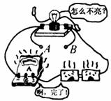 6.在如下图所示的电路中,若发生图中所示的现象,则在A.B间不可能是连接了( )