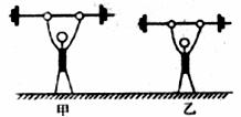 8.如图所示,两名运动员,甲比乙高,若他们举起相同质量的杠铃所用的时间相等,则 ( )