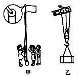 19.如图所示,升国旗用的旗杆顶上安装滑轮(甲图)是为了___________,而塔吊中使用滑轮组(乙图)主要是为了______。乙图中用104N的拉力F将重为1.8×104N的重物匀速竖直提升10m用了20s,则滑轮组的机械效率是_______,拉力F的功率是_________W。