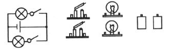 25.如下图所示,虚线的方框内有三个规格相同的小灯泡,框外有电源,要求:(1)将电源接在