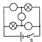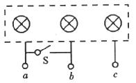 、c,开关S断开时,有一盏灯亮;(2)将电源接在b、c,开关S断开时,有两盏灯亮;(3)将电流接在b、c,开关S闭合时,三盏灯都亮.根据上述要求用笔画线在方框内