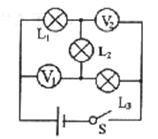 30.如下图所示电路,电源由3节蓄电池串联而成,当开关S闭合时,电压表V1和V2的示数分别为3.5V和4.5V,则灯L1、L2、L3两端的电压分别为多少?