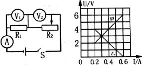 31.如下左图所示的电路,电源电压保持不变。闭合开关S,调节滑动变阻器,两电压表的示数随电路中电流变化的图线如右下图所示,根据图线的信息可知:____________(甲∕乙)是电压表V2示数变化的图线,电源电压为____________V,电阻R1的阻值为____________