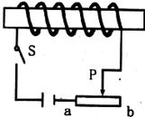 34.(2分)如下图所示,开关S闭合后,螺线管的右端是_________极,(填“N”或“S”)要使它的磁性增强,可将滑片P向_________端移动。(填“a”或“b”)