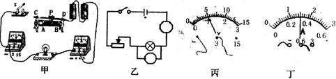 (2)在上图乙两个圆圈中填上实验所需电流表和电压表的符号。
