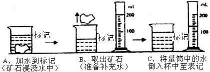 (2)因体积较大,放不进量筒,因此他利用一只烧杯,按下图所示方法进行测量,矿石的体积是_________cm3。