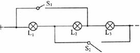 4.在如下图所示电路中,只闭合S1时,电灯__________亮;当S1、S2都断开时,电灯__________亮,它们是__________连接的;当S1、S2都闭合时,电灯_________亮,它们是__________连的。