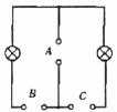 28.如图所示,是一个不完整的电路,请在图中的A、B、C三处填入(或不填)适当的电路元件(选择电源、开关、电压表中的任意两种器材),使电路成为并联电路.