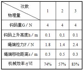 (3)比较实验1和实验3可得结论:使用同一滑轮组,________可以提高滑轮组的机械效率。