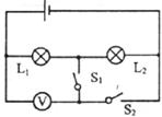 13.如下图,电源电压保持不变,当开关S1闭合、S2断开时,电压表示数3V;当S1断开、S2闭合时,电压表示数4.5V,则灯泡L1和L2两端的电压分别是 ( )