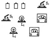 22.给你三节干电池,开关一个,导线若干,电流表,电压表,两个小灯泡.要求两灯独立工作,互不影响.开关S1能控制L1、L2,S2不能控制L2,电流表测L1电流,电压表测L2两端电压,请按要求画出电路图,并连接实物电路,元件位置如图所示,不能移动。