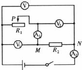 (4)在研究通过导体的电流跟该导体的电阻关系时,某同学将R2改换成R3时(R2<R3),因未断开开关而直接卸下R2,此时表V2的示数为__________,电表示数为零的有________表;当他将R3接好后,为使电表V2示数仍恢复为R2上两端的电压值,则应将滑片P向________滑动,这样做是为了研究通过导体上的电流与该导体电阻的大小关系时,改变导体________,通过改变滑动变阻器接入电路中的阻值,来保持导体的________不变,最后测得数据分析并得出结论.