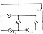 1.如图所示,若开关S、S1闭合,S2断开,能发光的灯是_________,电压表所测的是______两端的电压;若开关S、S2闭合,S1断开,那么能发光的灯是________,电压表所测的是________的两端电压;若开关S、S1、S2都闭合,那么能发光的是________,电压表所测的是________两端的电压.