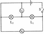 6.如下图所示,V1的示数为6V,V2的示数为2V,则电源总电压为___________.