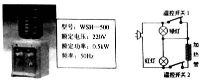 当温控开关1、2都闭合时,加热管正常工作,红灯 ,绿灯 ;当水沸腾后,温控开关1、2都断开,加热管不工作,其中R红远远小于R绿,则红灯 ,绿灯 。