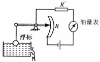 28.如下图所示是一种自动测定油箱内油面高度的装置,R是滑动变阻器,它的金属滑片连在杠杆的一端,从油量表(由电流表改装而成)指针的刻度,就可以知道油箱内油面的高度。下列关于其工作原理的说法中,正确的是 ( )